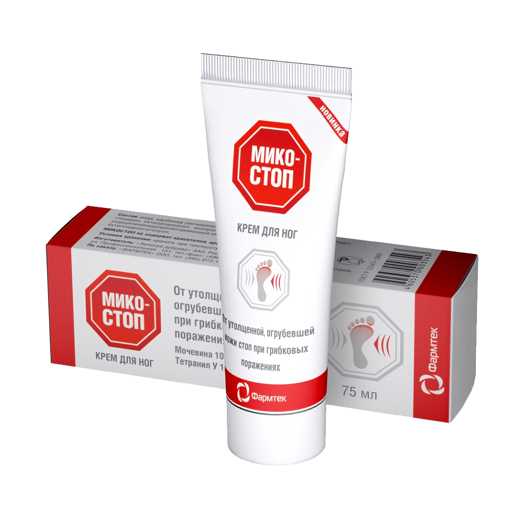 При утолщенной, огрубевшей кожи стоп при грибковых поражениях, а также для повторной профилактики заражения грибком МИКОСТОП наносится на поверхность кожи стопы, утром и на ночь до полного устранения утолщенного огрубевшего слоя кожи. Эффект достигается через 7-14 дней регулярного применения.
