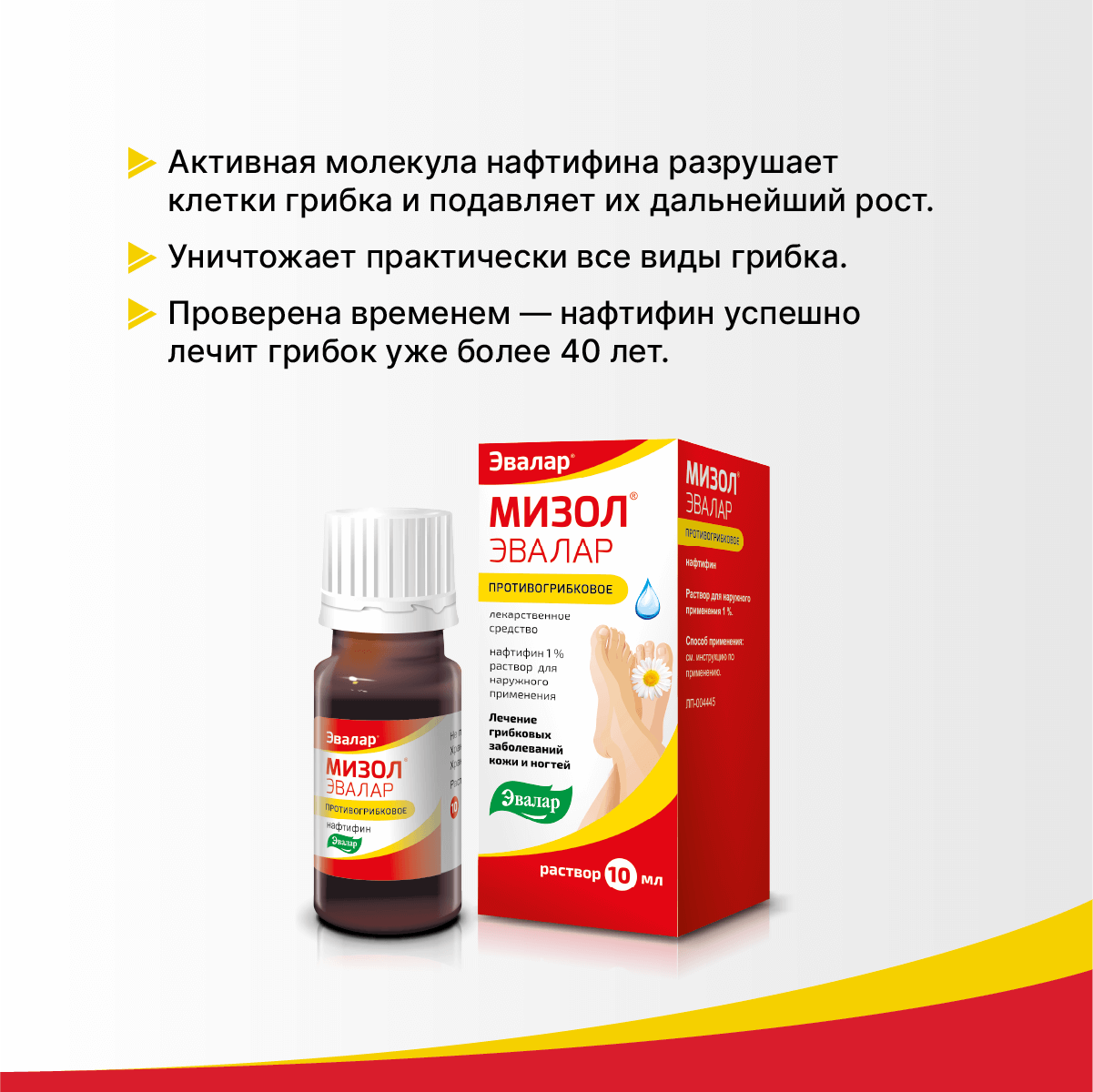 Мизол® Эвалар эффективен при лечении микозов, поражающих области кожи с гиперкератозом, а также в зонах роста волос.