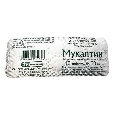 Мукалтин представляет собой смесь полисахаридов травы алтея лекарственного, обладает отхаркивающими свойствами. Благодаря рефлекторной стимуляции усиливает активность мерцательного эпителия и перистальтику дыхательных бронхиол в сочетании с усилением секреции бронхиальных желёз.