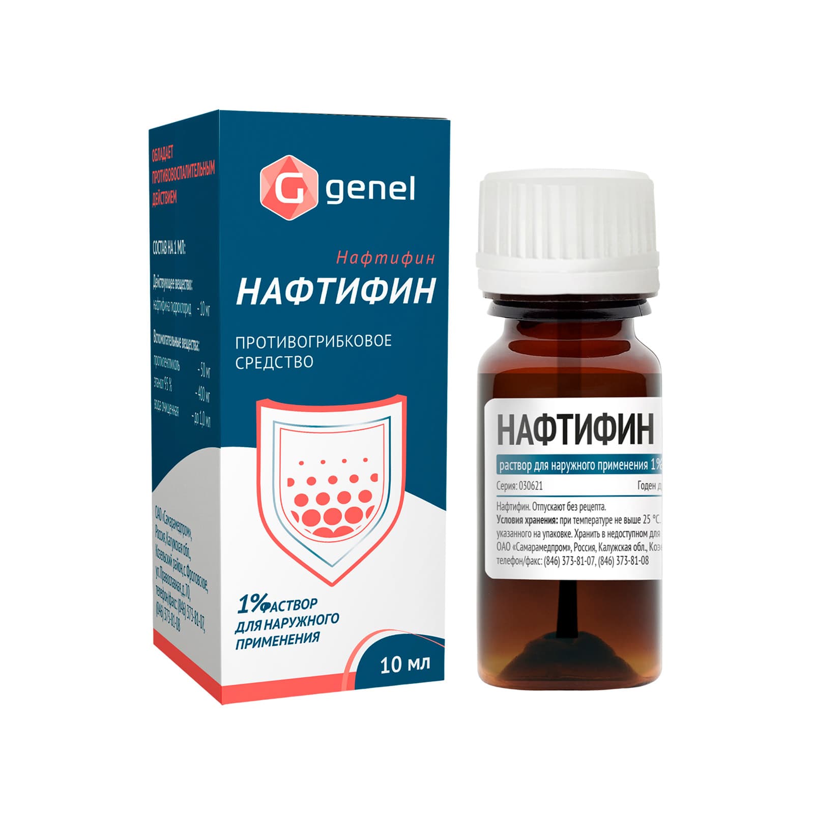 Действующее вещество: нафтифина гидрохлорид — 10 мг.
