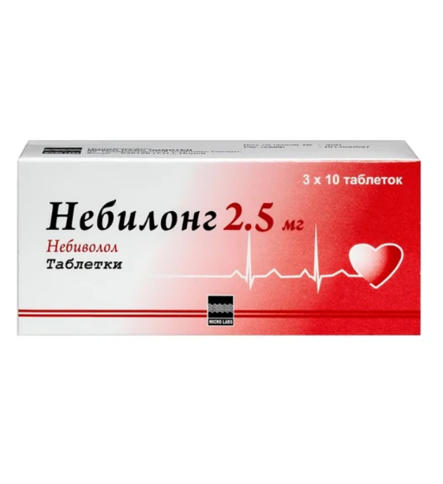 Активное вещество: Небиволол гидрохлорид 2,78 мг эквивалентного Небиволола 2,5 мг