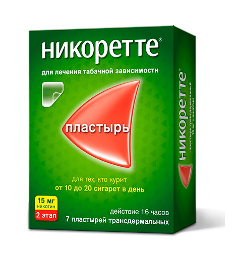 Никоретте® пластырь трансдермальный может применяться при резком отказе от курения, а также для увеличения промежутков времени между курением с целью как можно большего снижения курения до полного отказа от курения. Пациент должен сделать все возможное, чтобы окончательно бросить курить при лечении пластырем Никоретте® .