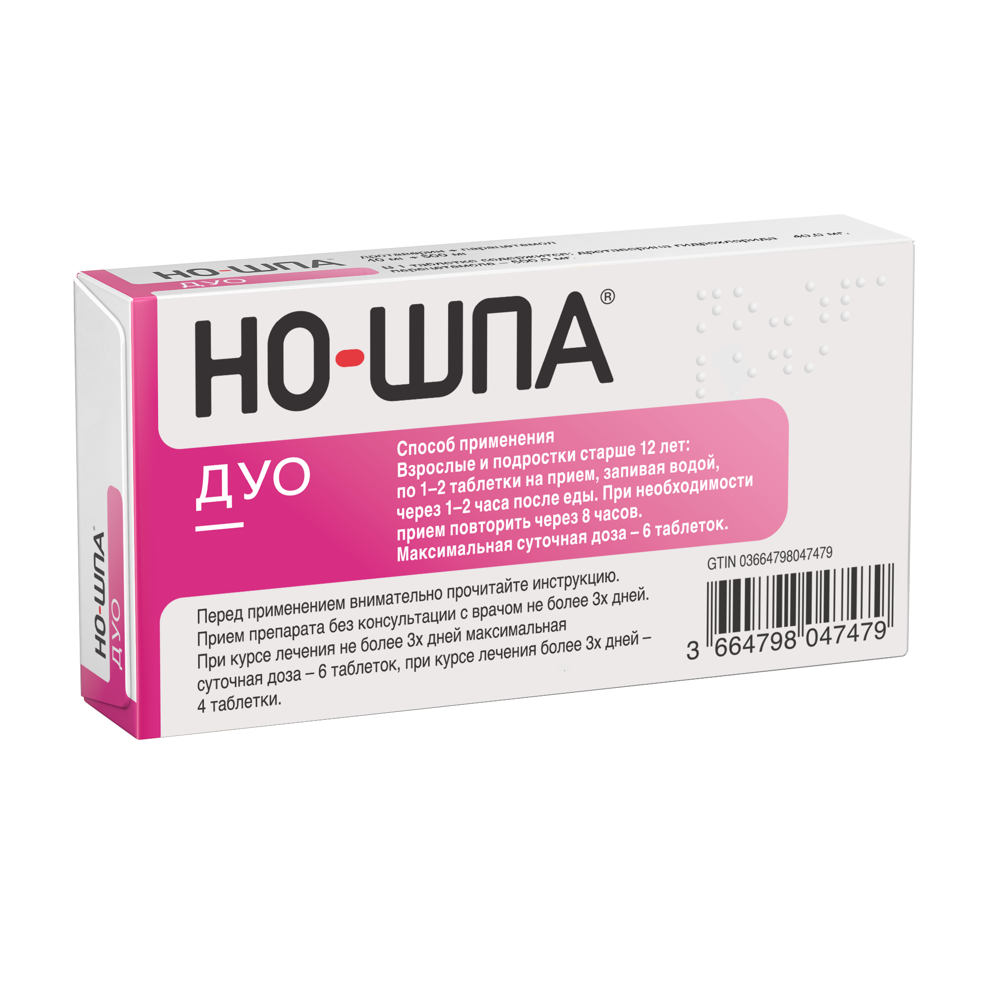Но-шпа Дуо таблетки 40мг+500мг №12