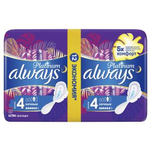 Always Platinum более комфортны (по сравнению с Always Ultra) благодаря тысячам микроподушечек и новым, мягким как шелк крылышкам. Они также обеспечивают лучшую защиту (по сравнению с Always Ultra) благодаря защитным боковым барьерам и ультравпитывающему внутреннему слою, который запирает влагу внутри. Always Platinum Ночные (Размер 4) с крылышками рекомендованы для ночного использования или для дневного использования при обильных выделениях.