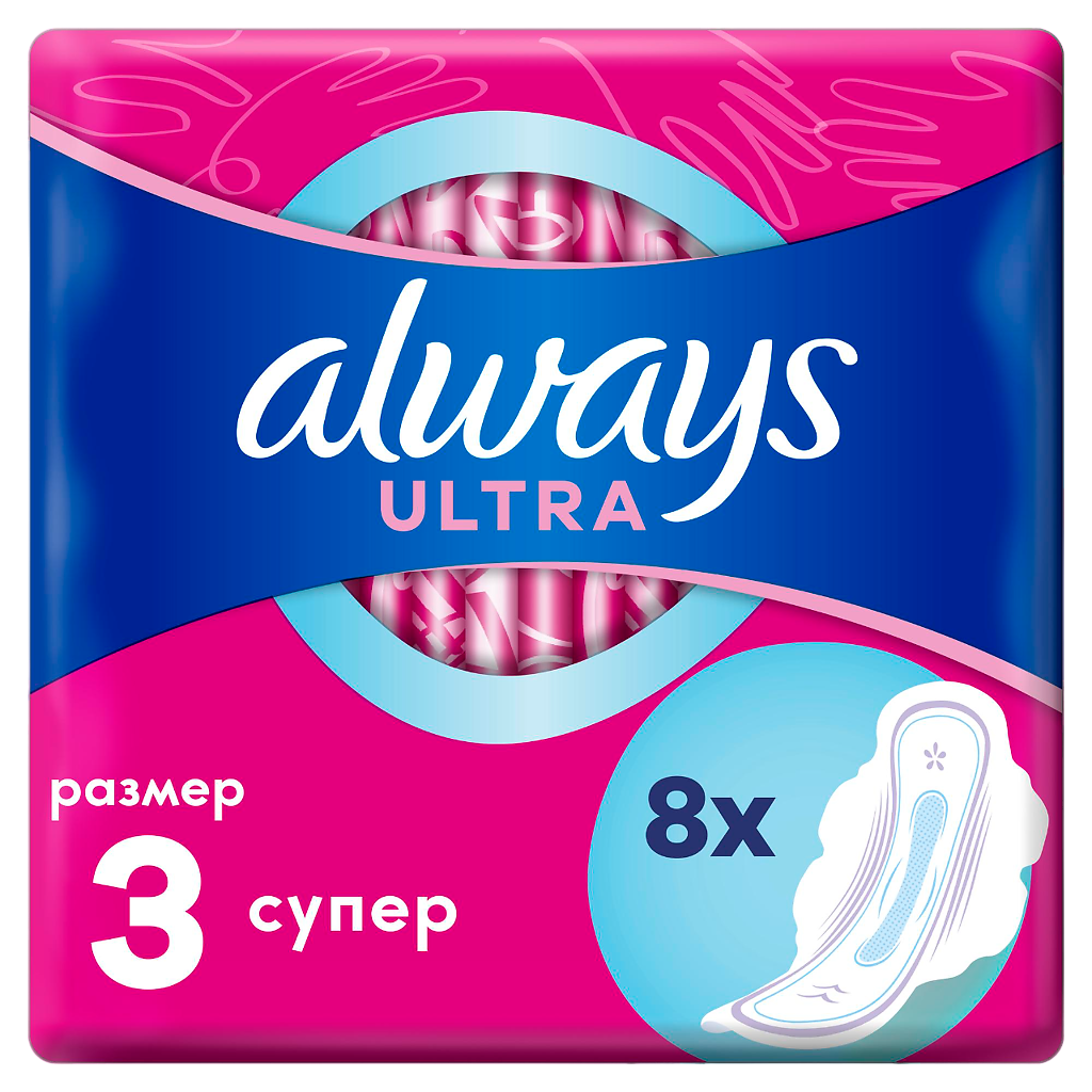 Гигиенические прокладки Always Ultra Супер (Размер 3) с системой СразуСухо мгновенно впитывают влагу. и удерживают ее внутри, обеспечивая до 100 % защиты и уверенности.