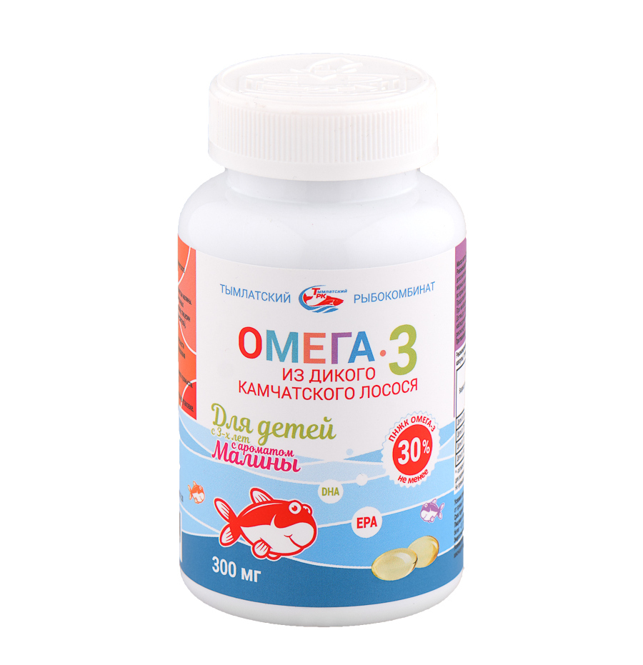 Омега-3 из дикого камчатского лосося для детей с 3-х лет с ароматом малины капсулы 300мг №250