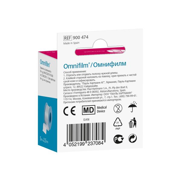 OMNIFILM/ОМНИФИЛМ - изготовлен из специальной пленки. Лейкопластырь не боится воды, гипоаллергенный, подходит для чувствительной кожи. Не останавливает воздухообмен, фиксирует повязки, катетеры, зонды и др., гипоаллергенный пластырь для водостойкой фиксации и закрепления повязок в рулоне. Рекомендуется для пациентов с чувствительной кожей.