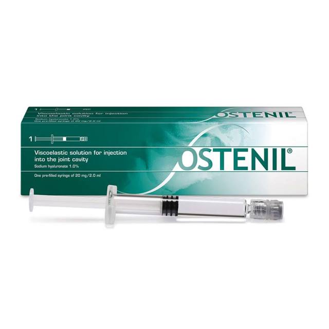- Остенил, который содержит 20 мг гиалуроновой кислоты и предназначен для лечения крупных суставов, к примеру, коленного, тазобедренного, локтевого и тому подобное