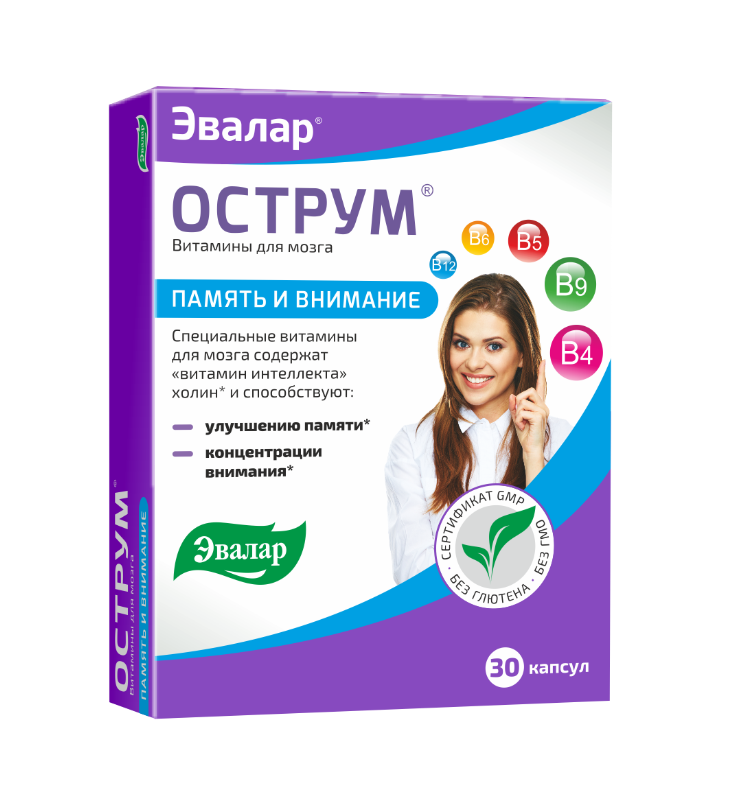 Снова забыли про важные дела и памятные даты? Внимание стало каким-то рассеянным? На решение простых задач стало уходить слишком много времени? Как помочь себе в этой ситуации? Чтобы улучшить память, внимание и умственную работоспособность, вам необходимы специальные витамины для мозга. Компания «Эвалар» предлагает особенный комплекс витаминов для мозга — Острум.