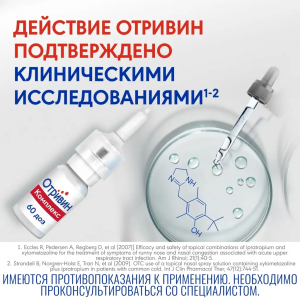 Одно впрыскивание препарата Отривин® Комплекс содержит около 70 мкг ксилометазол и на гидрохлорида и 84 мкг ипратропия бромида.