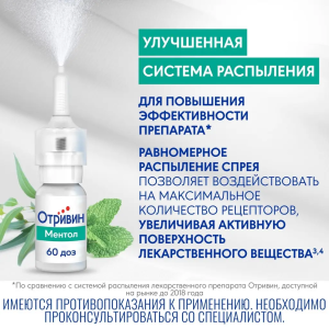 Отривин спрей назальный дозированный с ментолом и эвкалиптом 0,1% флакон 10мл