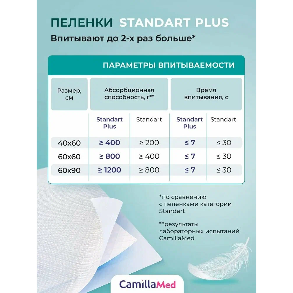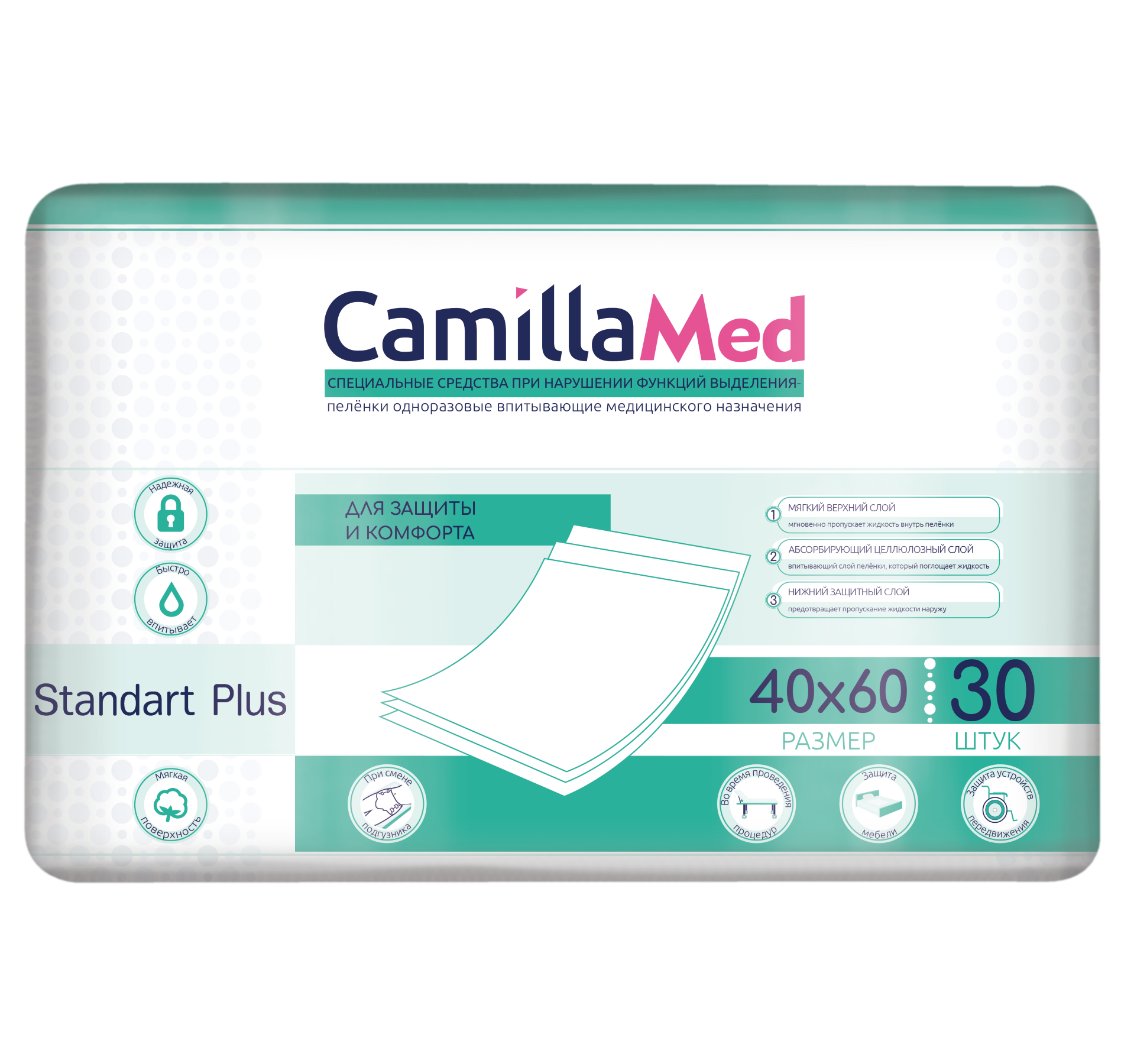 CamillaMed Standart Plus одноразовые впитывающие пеленки 40х60см №30