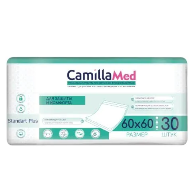 CamillaMed Standart Plus одноразовые впитывающие пеленки 60х60см №30