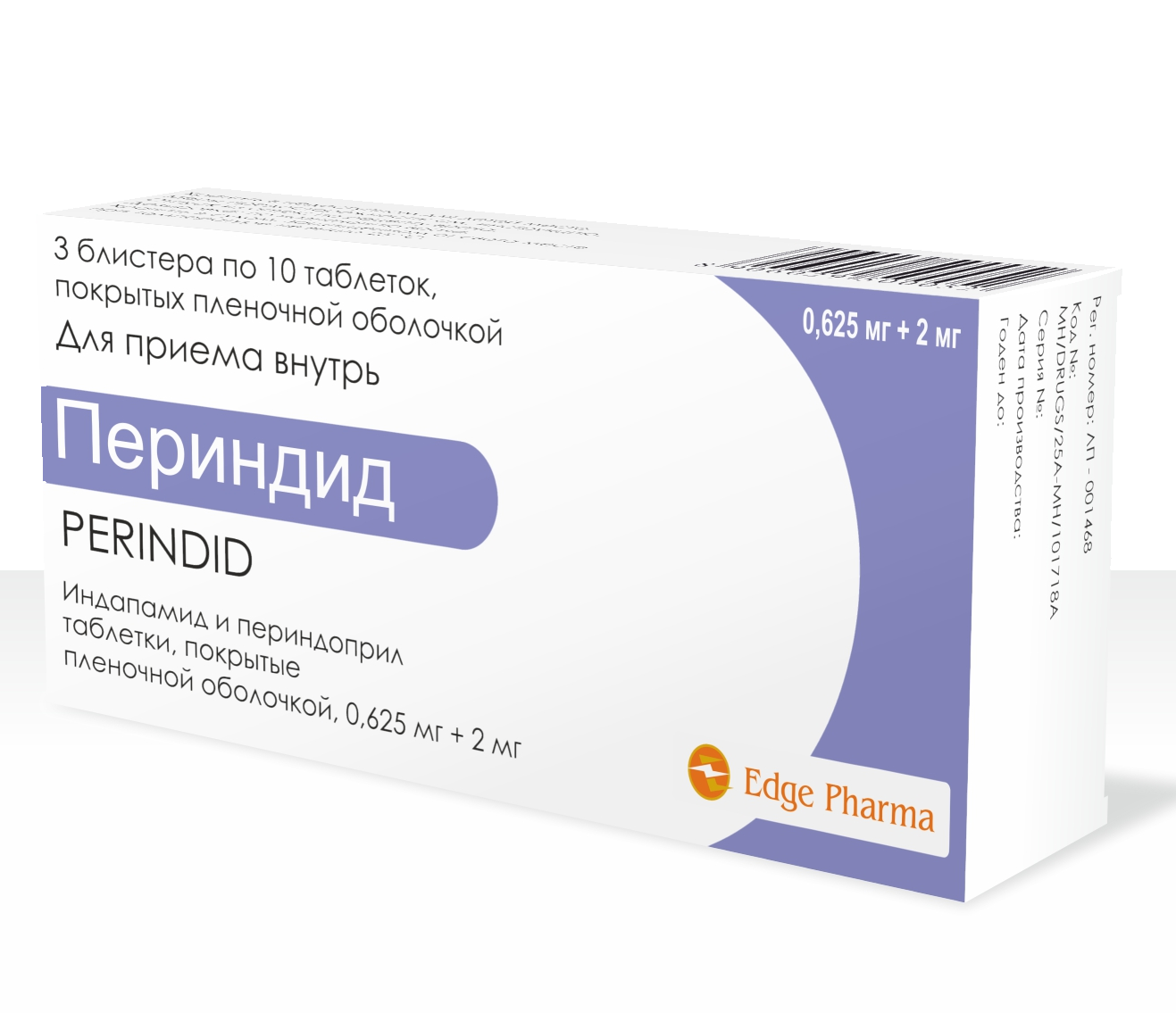 активные вещества: индапамид 0,625 мг и периндоприла эрбумин 2 мг