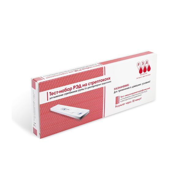 Кассеты с тест-полосками и одноразовые пластиковые пипетки упакованы в индивидуальные вакуумные упаковки из фольги алюминиевой, содержащие пакетики с силикагелем. Комплект тестов «РЭД стрептококк А» упакован в картонную коробку