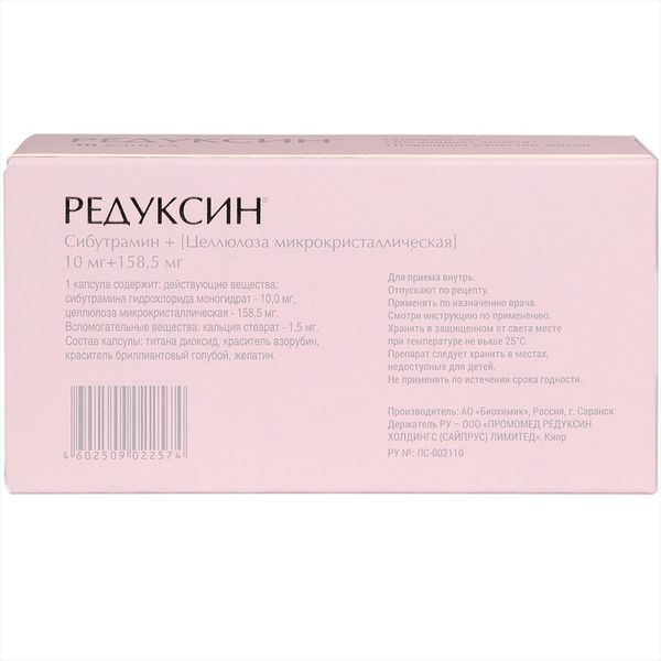 РЕДУКСИН® следует применять только в тех случаях, когда все немедикаментозные мероприятия по снижению массы тела малоэффективны - если снижение массы тела в течение 3 месяцев составило менее 5 кг.