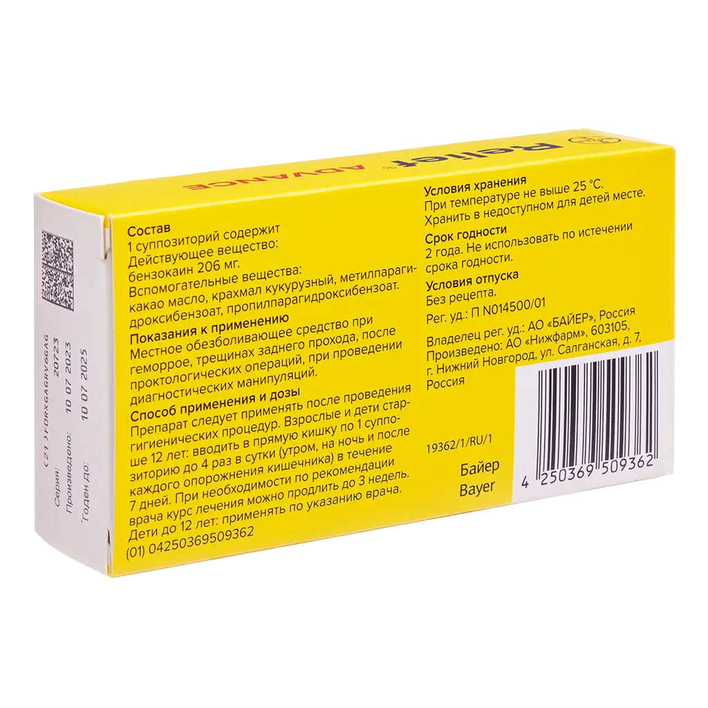 Релиф Адванс суппозитории ректальные 206мг №10