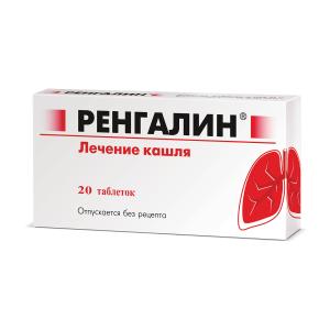 Комплексный препарат Ренгалин за счёт модификации гистамин-зависимой активации H1-рецепторов и брадикинин-зависимой активации В2 — рецепторов избирательно снижает возбудимость кашлевого центра продолговатого мозга, тормозит центральные звенья кашлевого рефлекса. Угнетая центры болевой чувствительности в таламусе, блокирует передачу болевых импульсов к коре головного мозга. Ингибирует поток болевой импульсации с периферии вследствие уменьшения высвобождения тканевых и плазменных альгогенов (гистамина, брадикинина, простогландинов и др.). В отличие от наркотических анальгетиков не вызывает угнетения дыхания, лекарственной зависимости, не обладает наркогенным и снотворным действием.