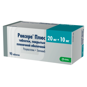 - Препарат Роксера® Плюс показан в качестве заместительной терапии пациентам, получающим розувастатин и эзетимиб в соответствующих дозах.