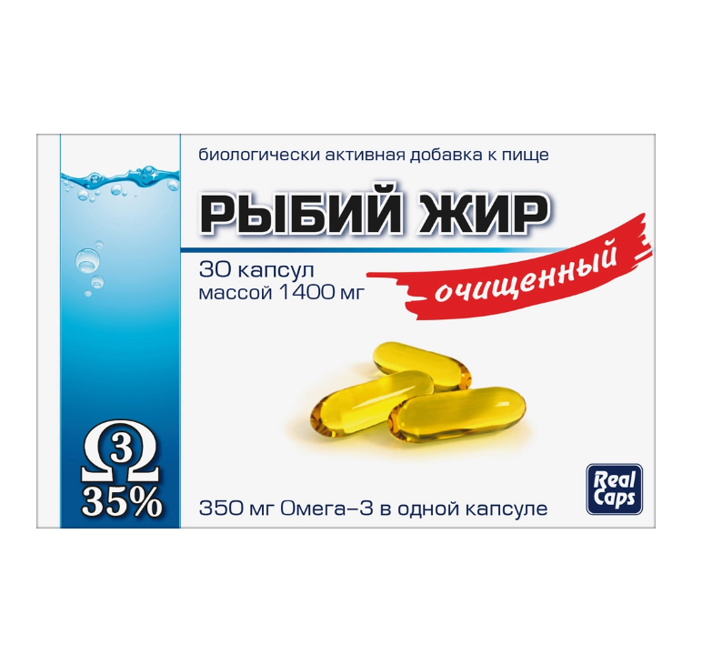 Рыбий жир очищенный – это биологически активная добавка (БАД) к пище - натуральный богатый источник омега-3 жирных кислот, который поможет естественным образом восполнить их недостаток в Вашем питании. Рыбий жир содержит Омега-3 жирные кислоты, которые улучшают работу сердечно-сосудистой системы, снижают уровень холестерина в крови, способствуют укреплению иммунитета и улучшению зрения. Каждая капсула содержит 350 мг ПНЖК Омега-3, которые благоприятно влияют на здоровье человека. При регулярном использовании рыбьего жира можно укрепить здоровье и улучшить общее самочувствие.