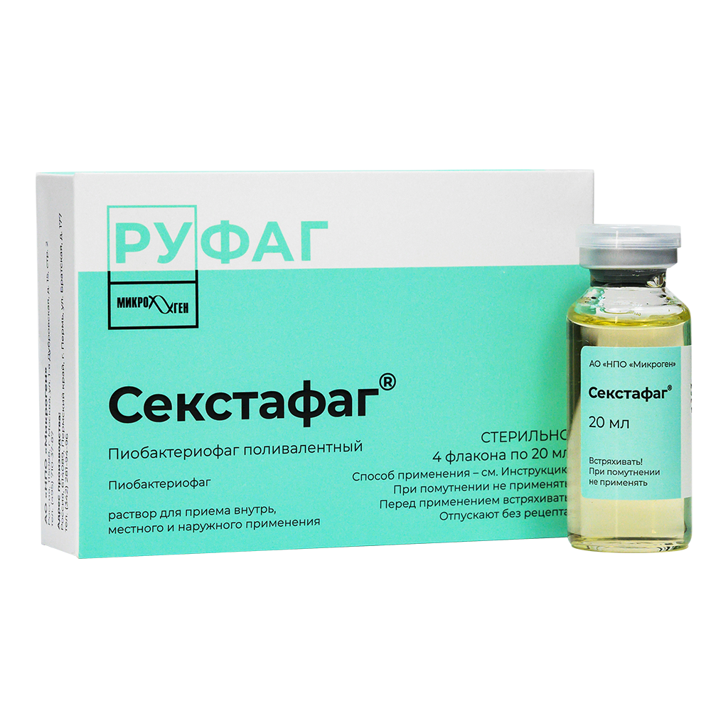 Секстафаг (пиобактериофаг поливалентный) раствор для приема внутрь, местного и наружного применения флаконы 20мл №4