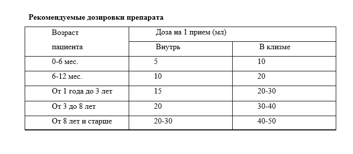 При сепсисе, энтероколите новорождённых, включая недоношенных детей, бактериофаг применяют в виде высоких клизм (через газоотводную трубку или катетер) 2–3 раза в сутки (см. табл.). При отсутствии рвоты и срыгивания возможно применение препарата через рот. В этом случае он смешивается с грудным молоком. Возможно сочетание ректального (в клизмах) и перорального (через рот) применения препарата. Курс лечения 5–15 дней. При рецидивирующем течении заболевания возможно проведение повторных курсов лечения. С целью профилактики сепсиса и энтероколита при внутриутробном инфицировании или опасности возникновения внутрибольничной инфекции у новорождённых детей бактериофаг применяют в виде клизм 2 раза в день в течение 5–7 дней.