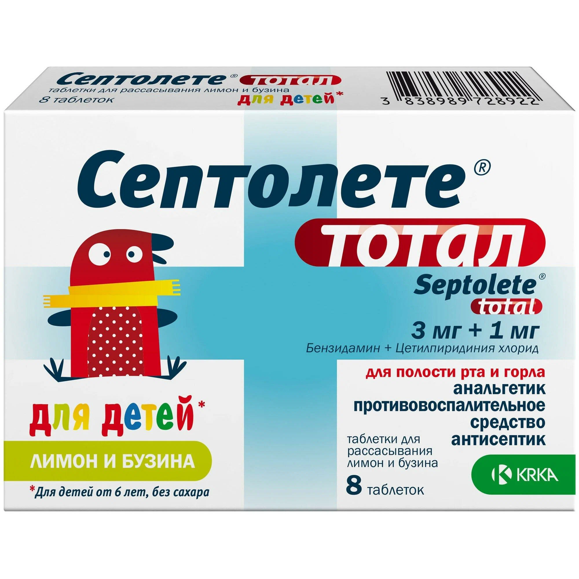 Септолете тотал таблетки для рассасывания лимон и бузина 3мг+1мг №8