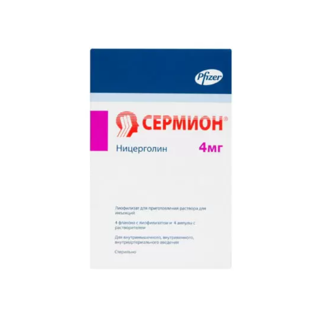 Сермион лиофилизат для приготовления раствора для инъекций 4мг флакон №4 + растворитель ампулы 4мл №4
