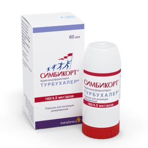 Рекомендуется постепенно уменьшать дозу препарата перед прекращением лечения и не рекомендуется резко отменять лечение. Симбикорт (80/4,5 мкг/доза) Турбухалер не предназначен для пациентов с тяжёлой бронхиальной астмой. Симбикорт Турбухалер не предназначается для первоначального подбора терапии на первых этапах лечения бронхиальной астмы. При недостаточной эффективности терапии или превышении максимальных рекомендуемых доз Симбикорта необходимо пересмотреть тактику лечения. Неожиданное и прогрессирующее ухудшение контроля симптомов бронхиальной астмы или ХОБЛ является потенциально угрожающим для жизни состоянием и требует срочного медицинского вмешательства. В данной ситуации следует рассмотреть возможность повышения дозы глюкокортикостероидов, то есть назначение курса пероральных глюкокортикостероидов или лечения антибиотиками в случае присоединения инфекции. Пациентам рекомендуется постоянно иметь при себе препараты неотложной помощи, или Симбикорт Турбухалер (для пациентов с бронхиальной астмой, использующих Симбикорт Турбухалер для поддерживающей терапии и для купирования приступов), или бета2- адреномиметики короткого действия (для всех пациентов, использующих Симбикорт Турбухалер только для поддерживающей терапии). Следует обратить внимание пациента на необходимость регулярного приёма поддерживающей дозы Симбикорта Турбухалера в соответствии с подобранной терапией, даже в случаях отсутствия симптомов заболевания. Ингаляции Симбикорта Турбухалера для купирования приступов должны проводиться только при возникновении симптомов, но не показаны для регулярного профилактического использования, то есть перед физической нагрузкой. В таких случаях показано применение отдельного бронходилятатора короткого действия. Если симптомы бронхиальной астмы поддаются контролю, можно постепенно снижать дозу Симбикорта Турбухалера, при этом важно постоянно следить за состоянием пациентов. Следует назначать наименьшую эффективную дозу Симбикорта Турбухалера (см. раздел «Способ применения и дозы»). Лечение Симбикортом Турбухалером не следует начинать в период обострения или значительного ухудшения течения бронхиальной астмы. Во время терапии Симбикортом Турбухалером могут отмечать обострения и развитие серьёзных нежелательных явлений, связанных с бронхиальной астмой. Пациентам следует продолжать лечение, но обратиться за медицинской помощью при отсутствии контроля над симптомами бронхиальной астмы или в случае ухудшения состояния после начала терапии. Как и при любой другой ингаляционной терапии, возможно возникновение парадоксального бронхоспазма с немедленным усилением хрипов после приёма дозы препарата. В связи с чем, следует прекратить терапию Симбикортом, пересмотреть тактику лечения и, при необходимости, назначить альтернативную терапию. Системное действие может проявиться при приёме любых ингаляционных глюкокортикостероидов, особенно при приёме высоких доз препаратов в течение длительного периода времени. Проявление системного действия менее вероятно при проведении ингаляционной терапии, чем при использовании пероральных глюкокортикостероидов. К возможным системным эффектам относятся подавление функции надпочечников, задержка роста у детей и подростков, снижение мин