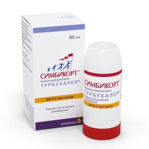 Рекомендуется постепенно уменьшать дозу препарата перед прекращением лечения и не рекомендуется резко отменять лечение. Симбикорт (80/4,5 мкг/доза) Турбухалер не предназначен для пациентов с тяжёлой бронхиальной астмой. Симбикорт Турбухалер не предназначается для первоначального подбора терапии на первых этапах лечения бронхиальной астмы. При недостаточной эффективности терапии или превышении максимальных рекомендуемых доз Симбикорта необходимо пересмотреть тактику лечения. Неожиданное и прогрессирующее ухудшение контроля симптомов бронхиальной астмы или ХОБЛ является потенциально угрожающим для жизни состоянием и требует срочного медицинского вмешательства. В данной ситуации следует рассмотреть возможность повышения дозы глюкокортикостероидов, то есть назначение курса пероральных глюкокортикостероидов или лечения антибиотиками в случае присоединения инфекции. Пациентам рекомендуется постоянно иметь при себе препараты неотложной помощи, или Симбикорт Турбухалер (для пациентов с бронхиальной астмой, использующих Симбикорт Турбухалер для поддерживающей терапии и для купирования приступов), или бета2- адреномиметики короткого действия (для всех пациентов, использующих Симбикорт Турбухалер только для поддерживающей терапии). Следует обратить внимание пациента на необходимость регулярного приёма поддерживающей дозы Симбикорта Турбухалера в соответствии с подобранной терапией, даже в случаях отсутствия симптомов заболевания. Ингаляции Симбикорта Турбухалера для купирования приступов должны проводиться только при возникновении симптомов, но не показаны для регулярного профилактического использования, то есть перед физической нагрузкой. В таких случаях показано применение отдельного бронходилятатора короткого действия. Если симптомы бронхиальной астмы поддаются контролю, можно постепенно снижать дозу Симбикорта Турбухалера, при этом важно постоянно следить за состоянием пациентов. Следует назначать наименьшую эффективную дозу Симбикорта Турбухалера (см. раздел «Способ применения и дозы»). Лечение Симбикортом Турбухалером не следует начинать в период обострения или значительного ухудшения течения бронхиальной астмы. Во время терапии Симбикортом Турбухалером могут отмечать обострения и развитие серьёзных нежелательных явлений, связанных с бронхиальной астмой. Пациентам следует продолжать лечение, но обратиться за медицинской помощью при отсутствии контроля над симптомами бронхиальной астмы или в случае ухудшения состояния после начала терапии. Как и при любой другой ингаляционной терапии, возможно возникновение парадоксального бронхоспазма с немедленным усилением хрипов после приёма дозы препарата. В связи с чем, следует прекратить терапию Симбикортом, пересмотреть тактику лечения и, при необходимости, назначить альтернативную терапию. Системное действие может проявиться при приёме любых ингаляционных глюкокортикостероидов, особенно при приёме высоких доз препаратов в течение длительного периода времени. Проявление системного действия менее вероятно при проведении ингаляционной терапии, чем при использовании пероральных глюкокортикостероидов. К возможным системным эффектам относятся подавление функции надпочечников, задержка роста у детей и подростков, снижение мин