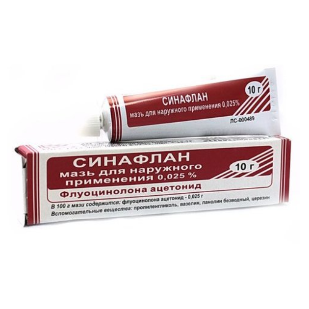 Активное вещество: ;флуоцинолона ацетонид ;(синафлан) — 0,025 ;г,