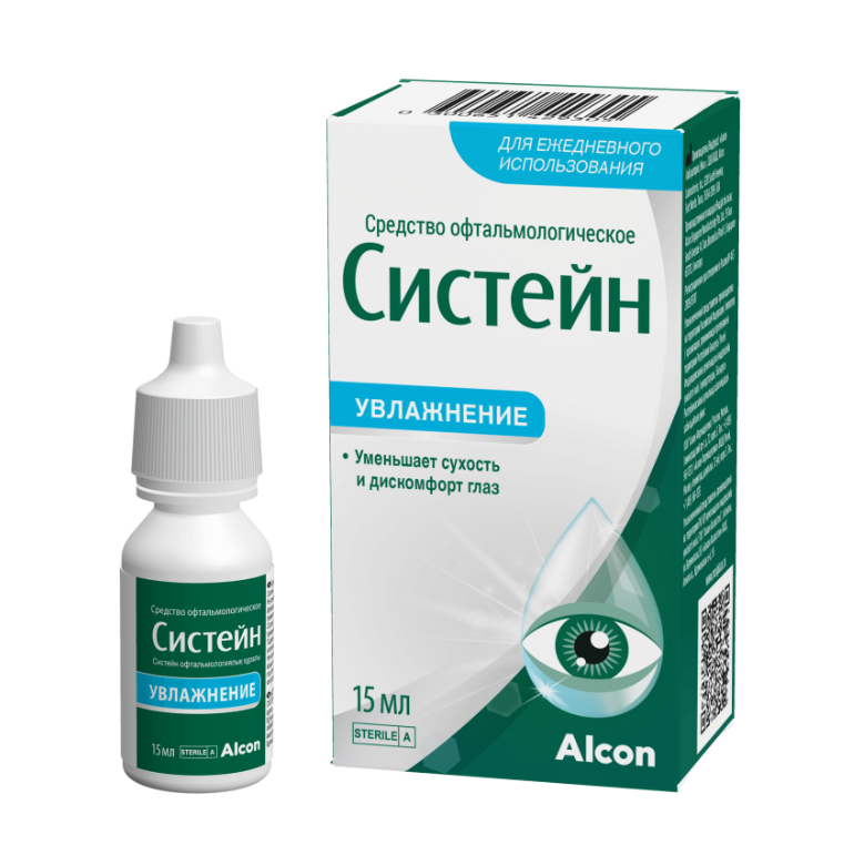 Систейн® средство офтальмологическое увлажняет, обеспечивает длительный комфорт и временное облегчение симптомов синдрома «сухого глаза», таких как сухость, раздражение, чувство жжения, чувство инородного тела или песка, вызванных пылью, дымом, ультрафиолетовыми лучами, сухим жаром (радиатор, сауна), кондиционером, ветром, косметикой, мерцанием длительно работающего телевизора или монитора компьютера.
