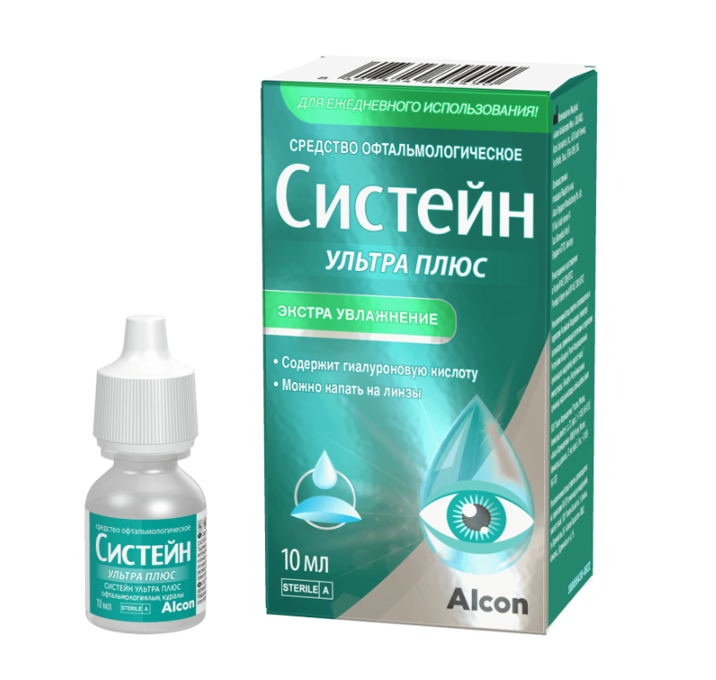 - Средство офтальмологическое СИСТЕЙН УЛЬТРА ПЛЮС может использоваться в течение дня по мере необходимости для облегчения симптомов синдрома «сухого глаза».