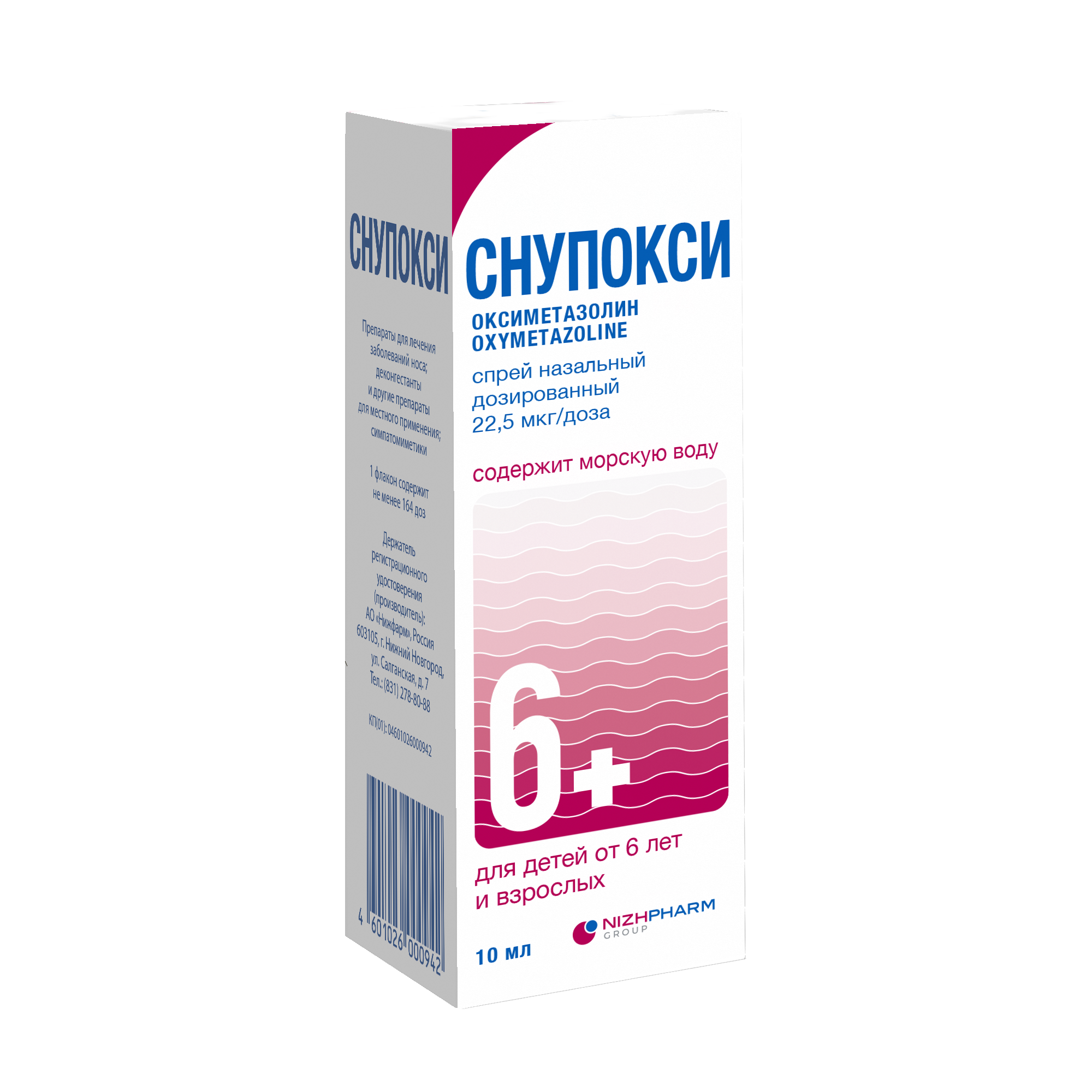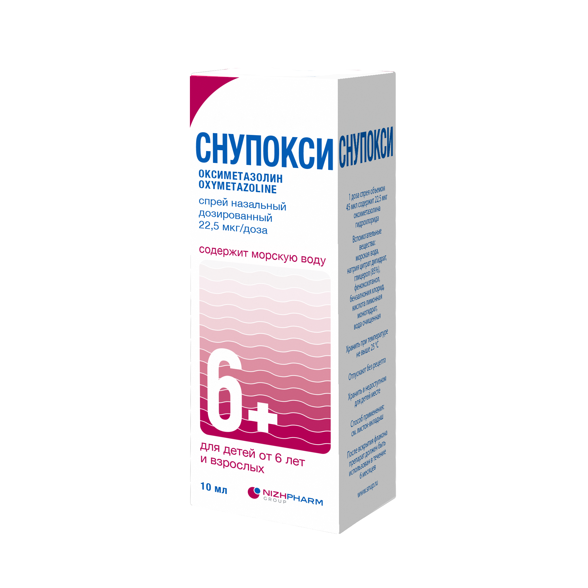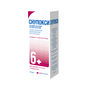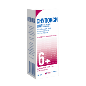 Лекарственный препарат СНУПОКСИ содержит действующее вещество ;оксиметазолин. ;Оксиметазолин ;относится к группе местных сосудосуживающих средств (деконгестантов), которые сужают сосуды слизистой оболочки носа. Препарат применяется для облегчения дыхания при заложенности носа. ;Оксиметазолин ;в лекарственной форме спрей назальный дозированный, 22,5 мкг/доза, действует с 25 секунды. Продолжительность действия препарата до ;12 ;часов.