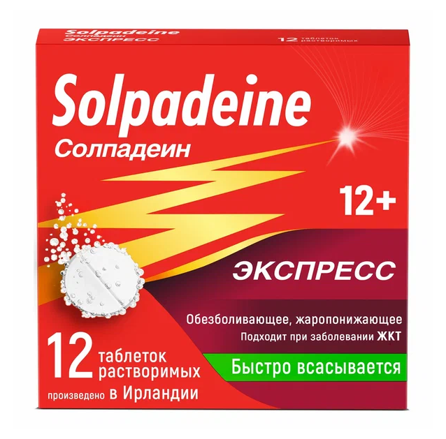 Солпадеин Экспресс таблетки растворимые 65мг+500мг №12