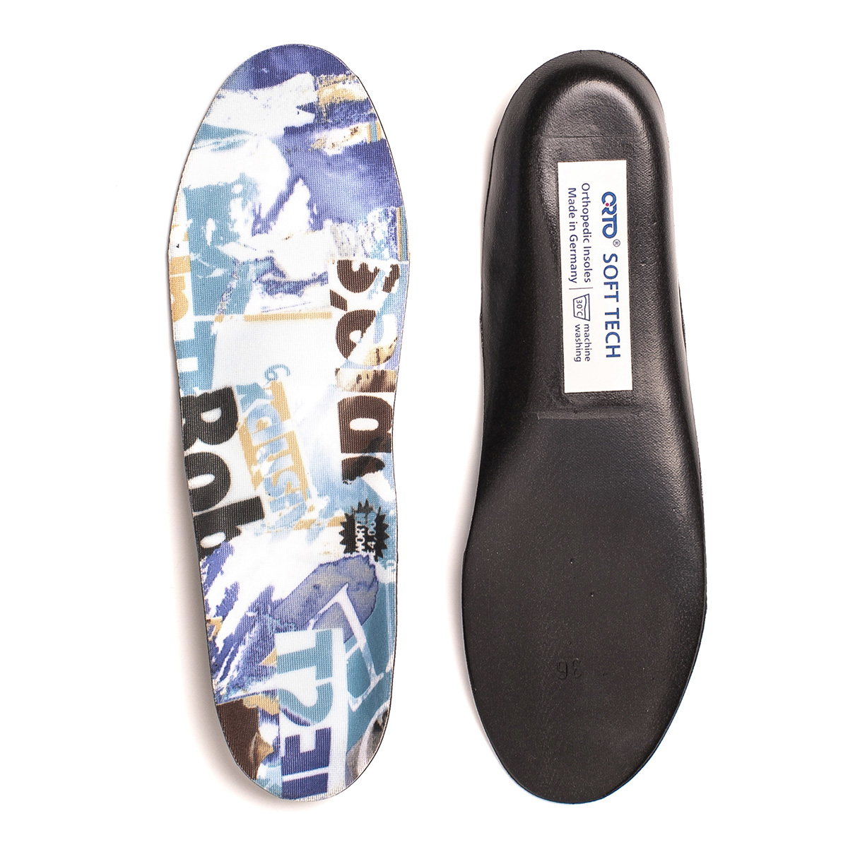 Ортопедические стельки ORTO Soft Tech со стандартной формой носка выполнены из материала, который способен запоминать форму (Мemopur®) и имеют мало выраженный анатомический рельеф и чашеобразную пятку. Верхняя поверхность стельки выполнена из абсорбирующей износоустойчивой ткани.