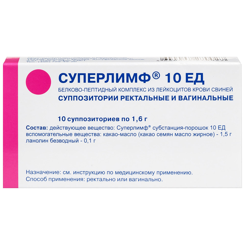 Суперлимф суппозитории ректальные и вагинальные 10ЕД №10