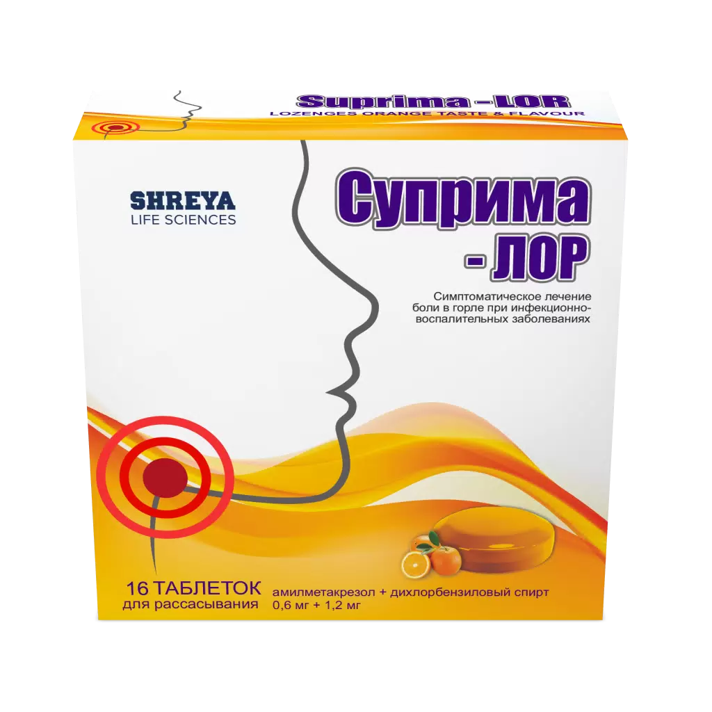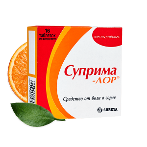 Суприма-ЛОР апельсиновые - круглые таблетки оранжевого цвета с запахом апельсина. Допускается неравномерность окрашивания, наличие пузырьков воздуха в карамельной массе и незначительная неровность поверхности и краев таблеток. Возможно появление белого налета.