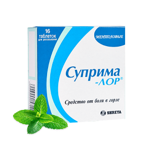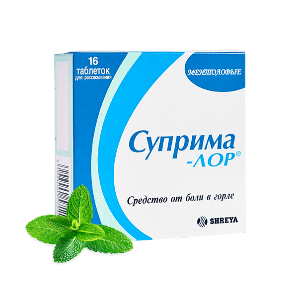 Суприма-ЛОР ментоловые: сахароза, декстроза, лимонная кислота, левоментол, краситель бриллиантовый голубой (Е 133), мяты перечной листьев масло.