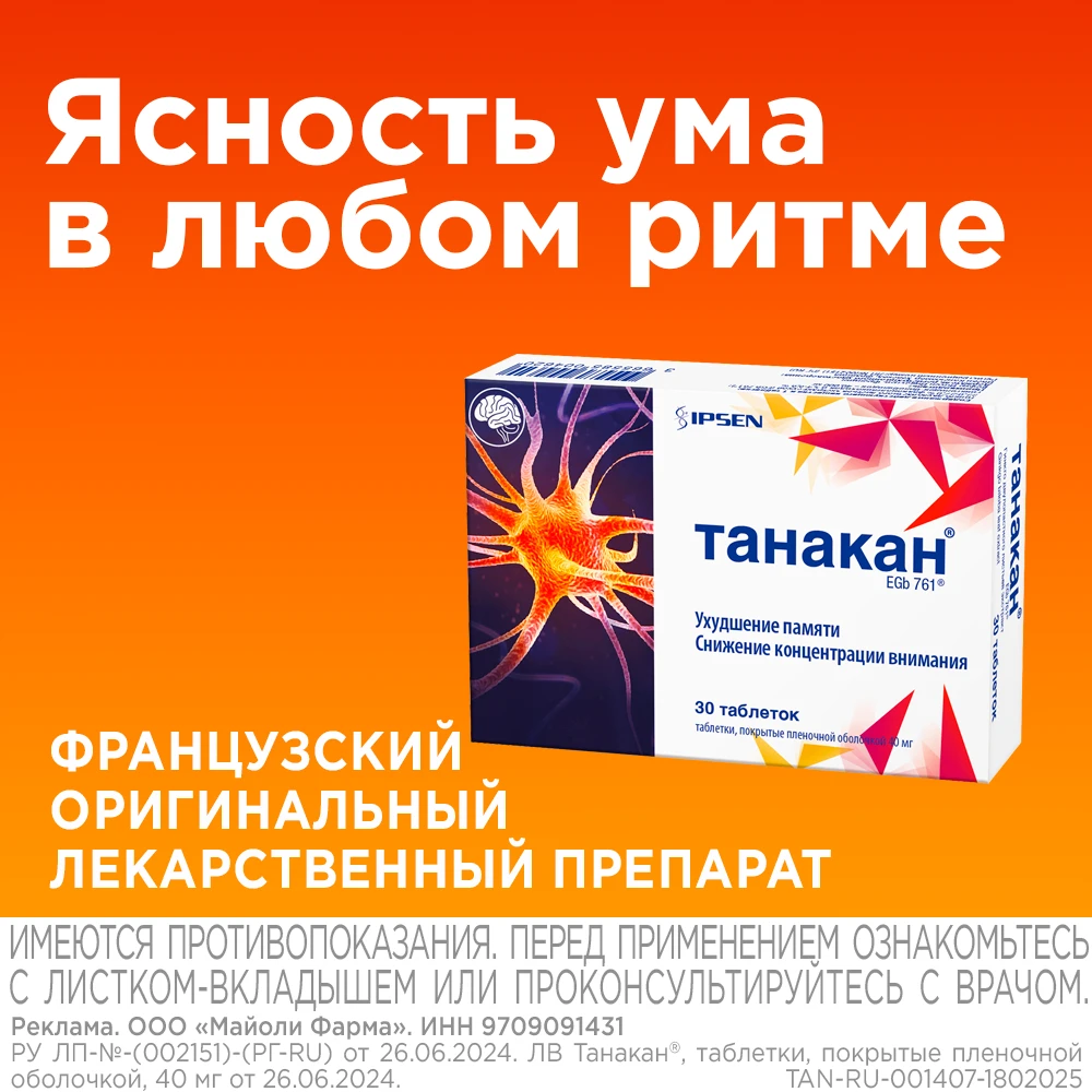 Танакан таблетки покрытые плёночной оболочкой 40мг №90