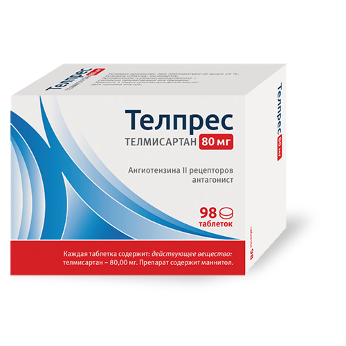 Рекомендованная доза - 1 таблетка препарата Телпрес 80 мг 1 раз в сутки.