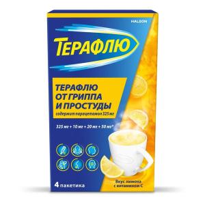 ТераФлю порошок для приготовления раствора для приема внутрь со вкусом лимона 325мг+10мг+20мг+50мг пакетики 22,1г №4