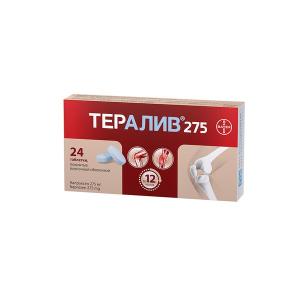 - Препарат Тералив 275 применяется для симптоматической терапии (для уменьшения боли, воспаления и снижения повышенной температуры тела) и на прогрессирование основного заболевания не влияет.