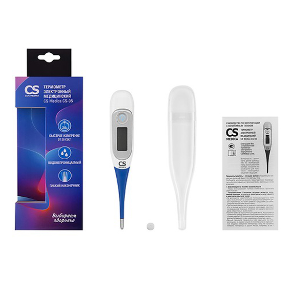 Электронный термометр CS Medica CS-95 - высокоточный прибор с большим дисплеем и мягким наконечником для измерения тела ректальным, аксиллярным и оральным способами взрослым и детям. Термометр относится к категории оборудования домашнего назначения.