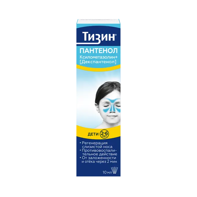 Тизин Пантенол спрей назальный дозированный для детей 0,05мг+5мг/доза флакон 10мл