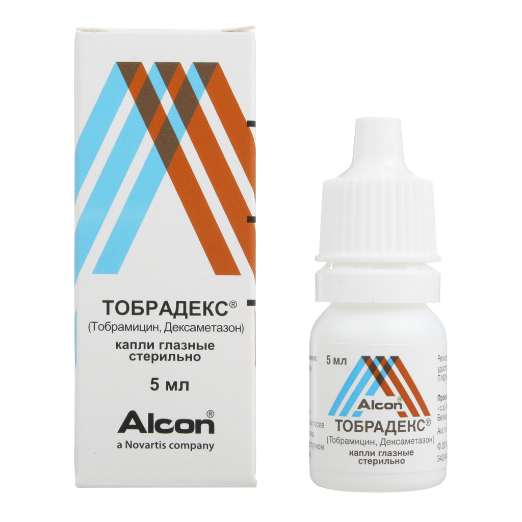 Можно сочетать применение мази и капель Тобрадекс® : мазь — вечером перед сном, капли — в течение дня (при сохранении частоты использования препарата 3–4 раза в сутки).