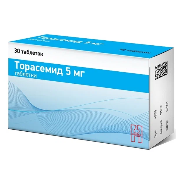 Действующее вещество: Торасемид 5,0/10,0 мг.
