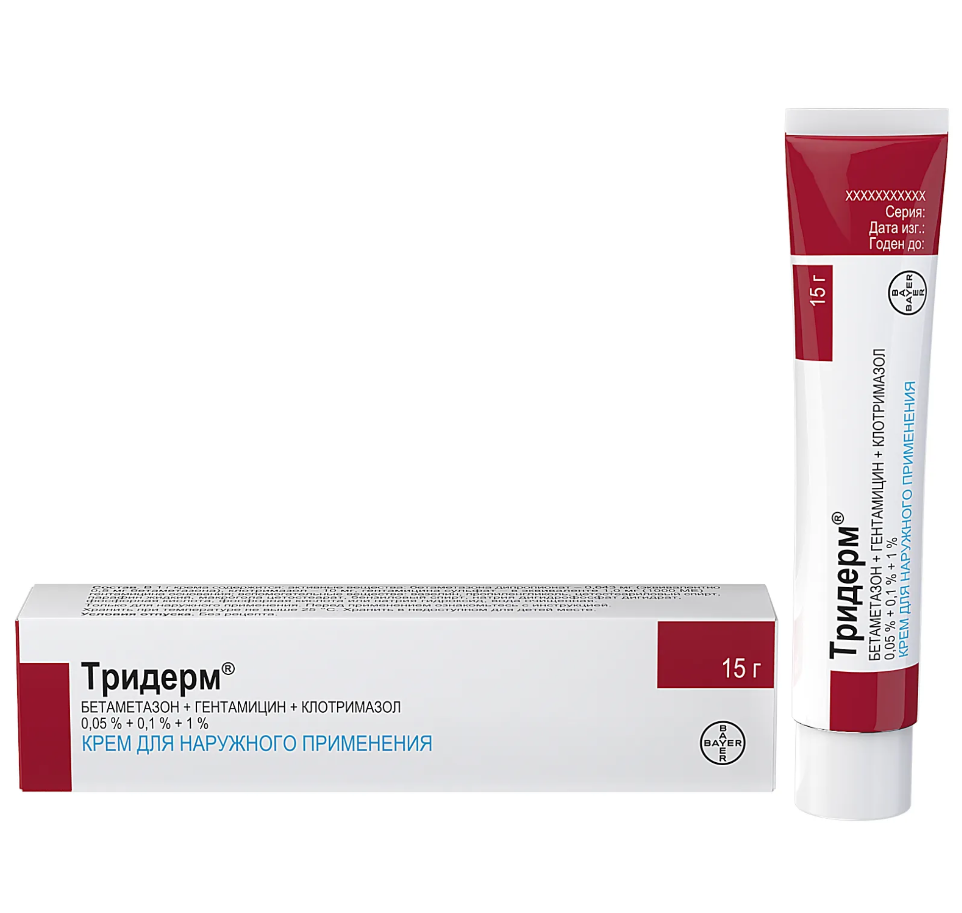 Крем Тридерм® сочетает в себе противовоспалительный, противозудный, противоаллергический и антиэкссудативный эффект бетаметазона дипропионата с противогрибковой активностью клотримазола и широким антибактериальным действием гентамицина сульфата.