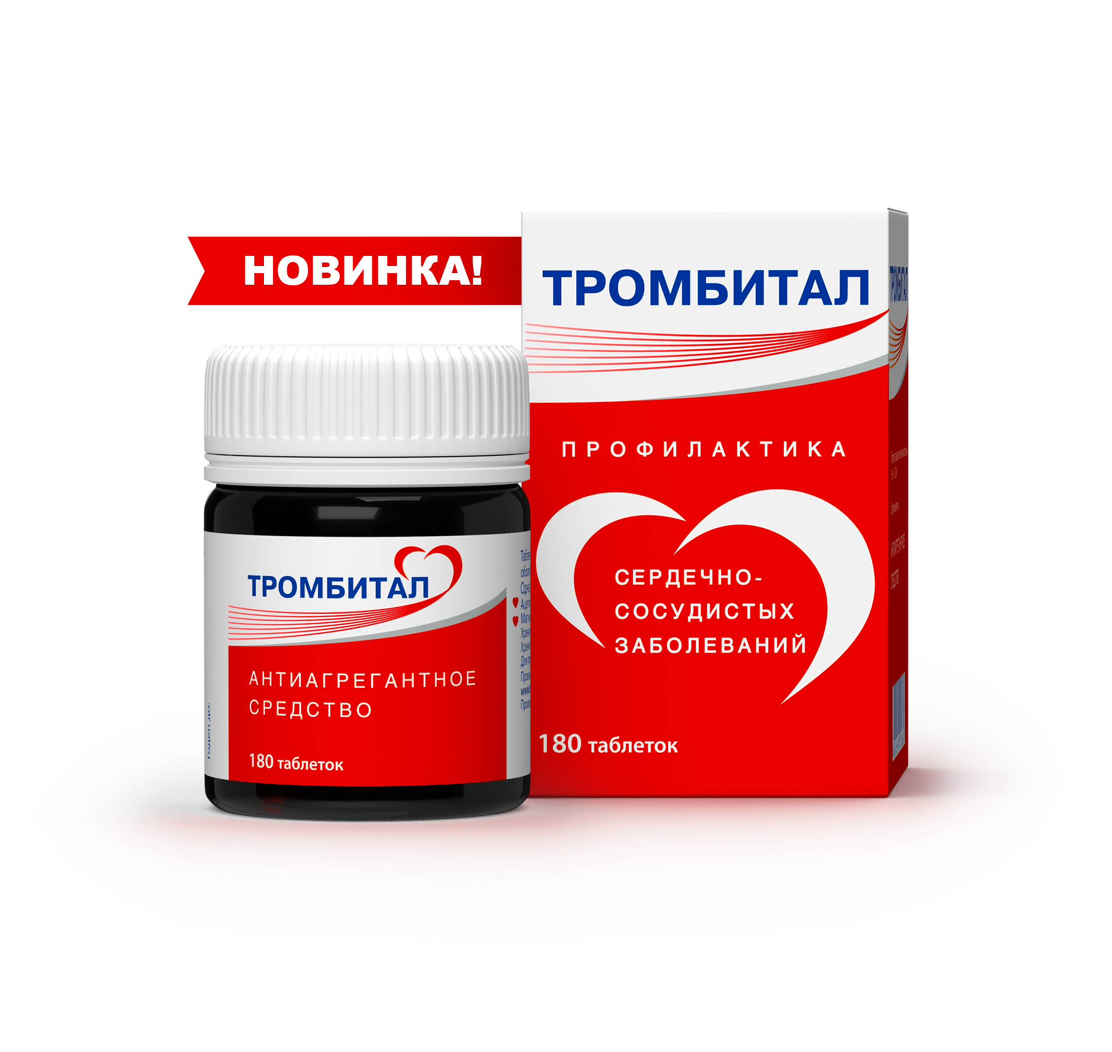 Первичная профилактика сердечно-сосудистых заболеваний, таких как тромбоз и острая сердечная недостаточность при наличии факторов риска (например, сахарный диабет, гиперлипидемия, артериальная гипертензия, ожирение, курение, пожилой возраст): 2 таблетки препарата Тромбитал принять в первые сутки, затем по 1 таблетке 1 раз в сутки.