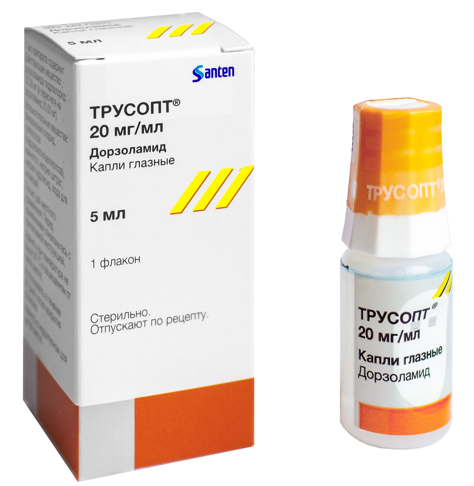 Препарат Трусопт® содержит дорзоламида гидрохлорид, который является сильным селективным ингибитором карбоангидразы II человека. После местного офтальмологического применения дорзоламида повышенное ВГД снижается независимо от того, связано оно с глаукомой или нет. Повышенное ВГД является основным фактором риска в патогенезе повреждения зрительного нерва и сужения полей зрения. Дорзоламид снижает ВГД без общих для миотических препаратов побочных действий, таких как никталопия, спазм аккомодации и сужение зрачков. Дорзоламид оказывает минимальное или практически не оказывает влияния на частоту пульса или артериальное давление.